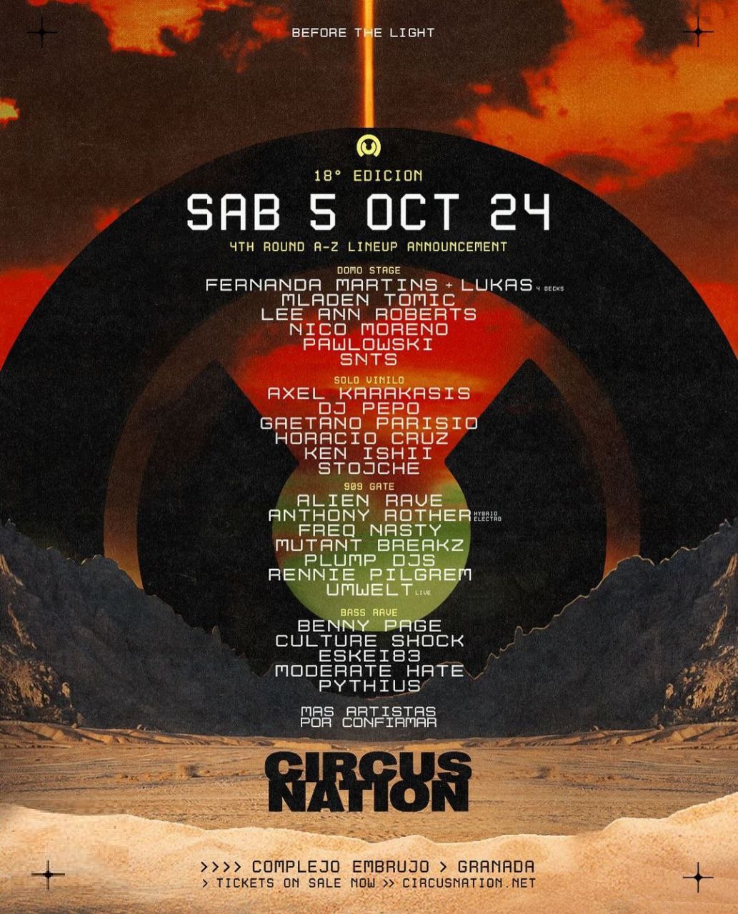 Sin dar respiro a sus aficionados, el festival CIRCUS NATION se ha mantenido muy activo en las últimas semanas anunciando confirmaciones para su próxima cita. El prestigioso evento celebrado en Granada está confeccionando uno de sus carteles más ambiciosos, el cual ya contaba con referentes como Nico Moreno, Eskei83, SNTS, Gaetano Parisio, Antony Rother, Culture Shock, Pawloski o Umwelt a los que se han ido sumando nuevos talentos de cara al sábado 5 de Octubre: