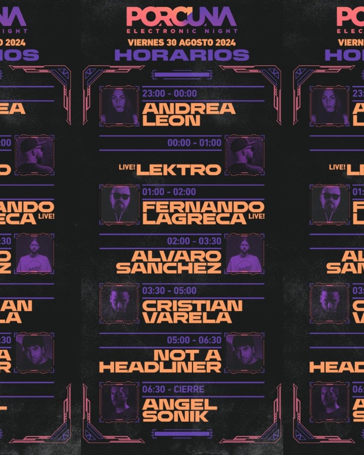 Un año más Porcuna se prepara para celebrar uno de los mejores festivales Underground de toda Andalucía. PORCUNA ELECTRONIC NIGHT encara la noche de este viernes 30 de agosto una Octava Edición que, con un cartel diseñado para hacer bailar y disfrutar al público de la provincia de Jaén de forma gratuita, hará que el Techno alcance otro nivel en una noche de vértigo.