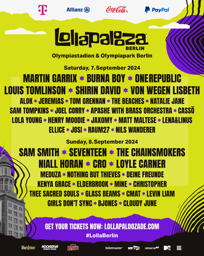 La cita de origen estadounidense llega a Alemania para tomar con la mejor música el Olympiastadion y Olympiapark de Berlín. Para ello contará con un asombroso cartel donde no sólo destacan las estrellas más brillantes de la atmósfera electrónica mundial, tales como MARTIN GARRIX, THE CHAINSMOKERS, ALOK, MEDVZA o JOEL CORRY; sino que también apuesta por un variado grupo de artistas que representarán Rock, Pop y un sinfín de géneros de la mejor forma posible: Sam Smith, Burna Boy, Seventeen, One Republic, Louis Tomlinson, CRO, Nothing But Thieves…