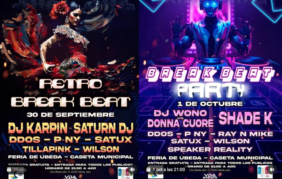 El sonido Breakbeat sigue creciendo en la provincia de Jaén, tomando a una de sus localidades más importantes como protagonista en los días venideros. La marca VDABREAKS hará que la Feria de Úbeda cuente con una interesante propuesta donde los ritmos rotos serán protagonistas los días 30 de septiembre y 1 de octubre.