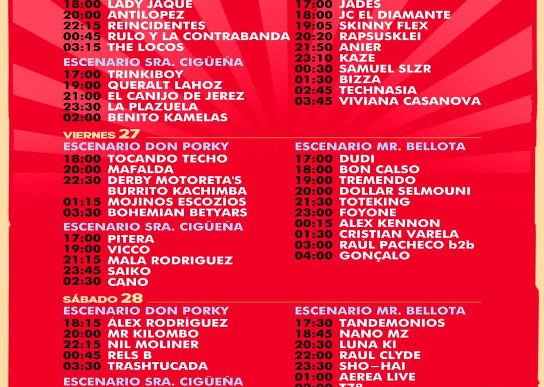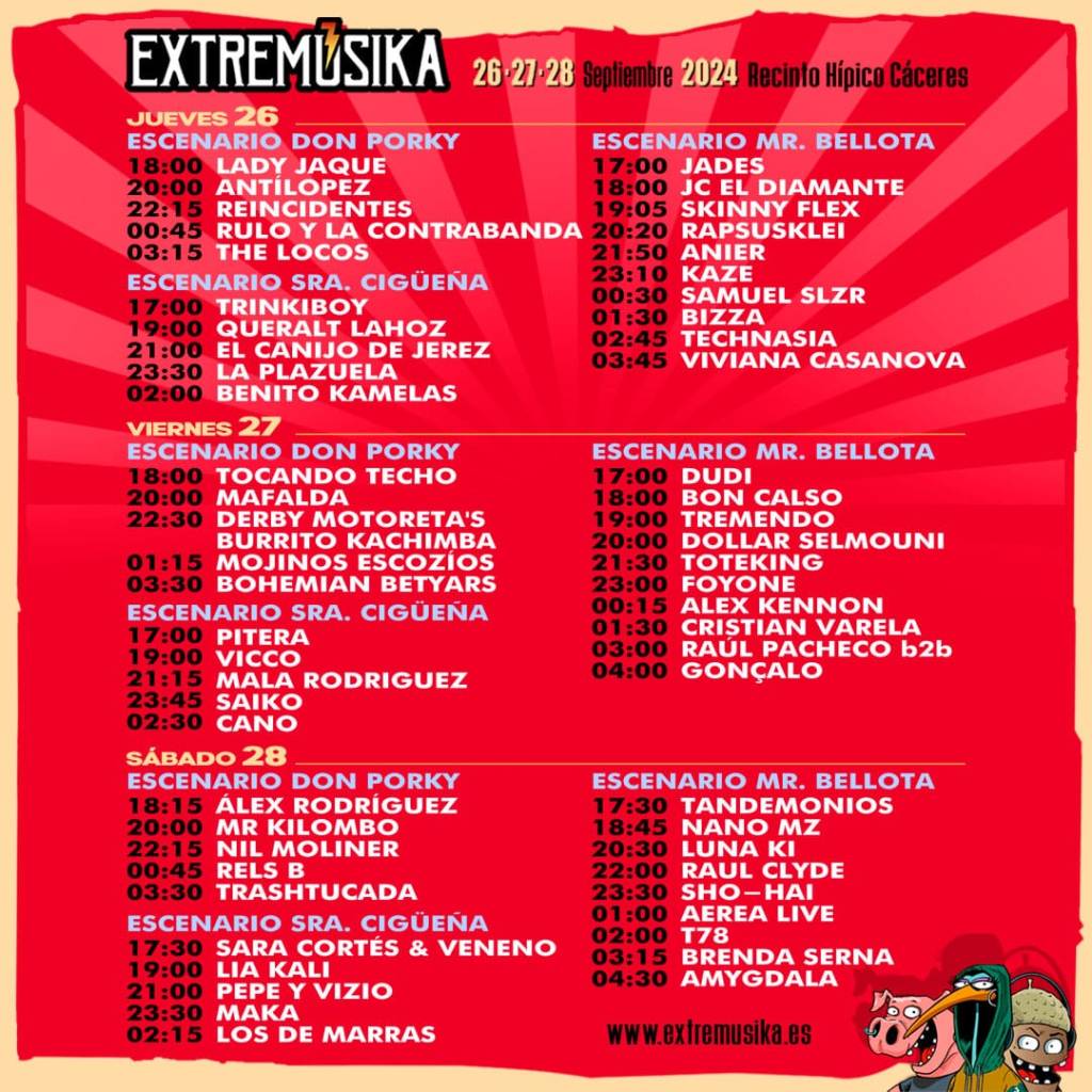 Desde el jueves 26 hasta el sábado 28 pasarán, por el recinto hípico de Cáceres, referentes muy diversos en cuanto a sonidos underground, urban, hip-hop, pop, rock, etc como son Technasia, Cristian Varela, Gonçalo, Viviana Casanova, Rels B, Toteking, Saiko, entre otros.