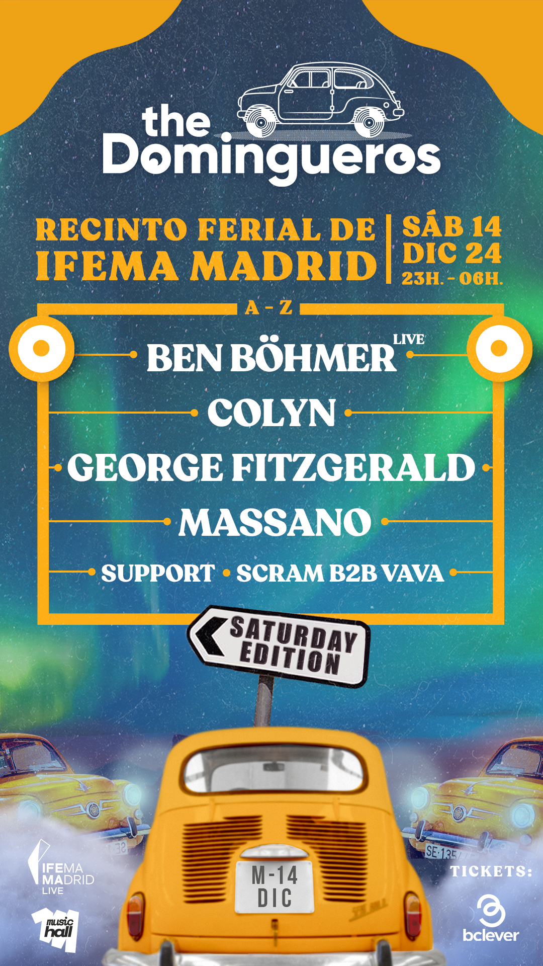 Tras su última cita el pasado 12 de mayo en el majestuoso estadio Santiago Bernabéu, la marca de coche amarillo vuelve a la carga en una localización singular donde ofrecerá nuevamente una producción de primer nivel en el Recinto Ferial de IFEMA MADRID. El sábado 14 de diciembre la electrónica toma el protagonismo en una nueva entrega de Domingueros, para cerrar la temporada de 2024 con una puesta en escena y un cartel espectacular en una única jornada de sábado por la noche.