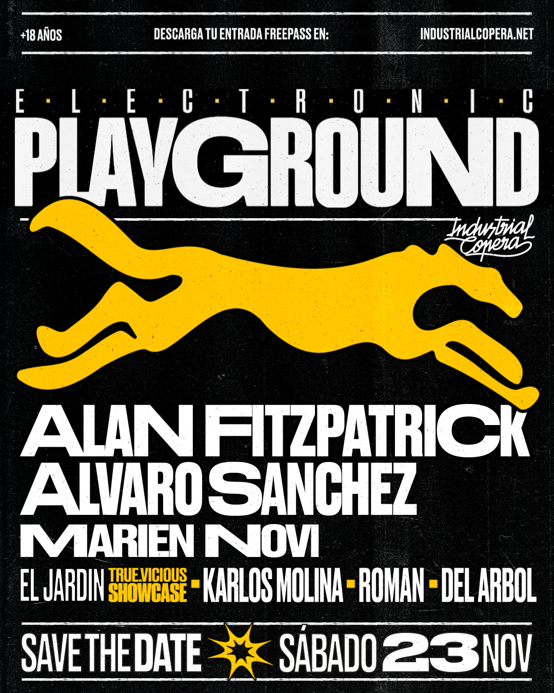 Una de las fiestas clásicas y más potentes de Industrial Copera regresa con un line up espectacular. Electronic Playground representa los valores de la sala granadina, un concepto diseñado para satisfacer los paladares clubbing más exigentes. El próximo sábado 23 de noviembre podrás disfrutar de los sets de Alan Fitzpatrick, Álvaro Sánchez y Marien Novi. Además en El Jardín la prestigiosa revista Vicious Magazine entra en escena con True Vicious Showcase, un proyecto que se expande por todo el territorio nacional y que mezcla artistas consagrados como Karlos Molina y nuevos nombres como Del Árbol.
