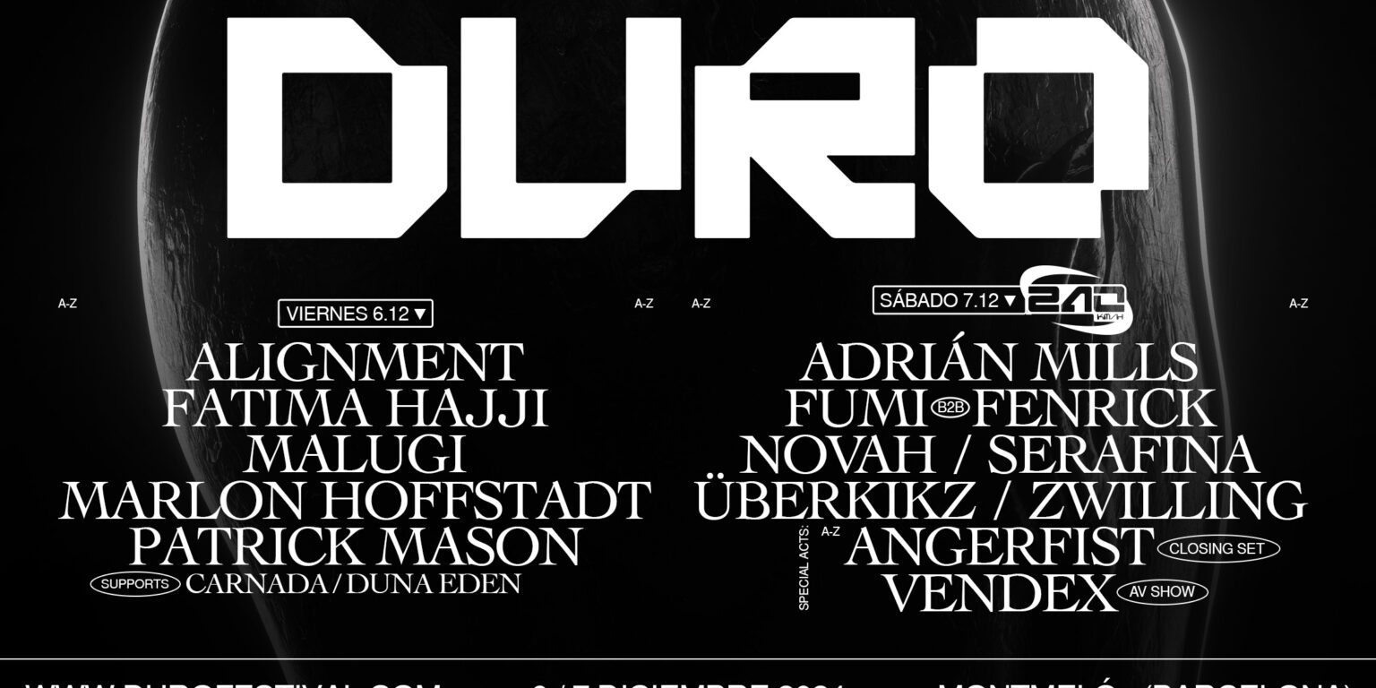 Uno de los grandes eventos revelación de la electrónica nacional en los últimos tiempos es sin duda DURO FESTIVAL. El evento ha crecido exponencialmente de la mano de un sonido Hard-Techno al alza, haciendo que el público español disfrute de eventos de gran potencial que acogen a los grandes líderes del sonido. Para despedir el año a lo grande, el festival celebrará una edición muy especial los días 6 y 7 de diciembre en Montmeló (Barcelona), contando con grandes artistas invitados para la ocasión.