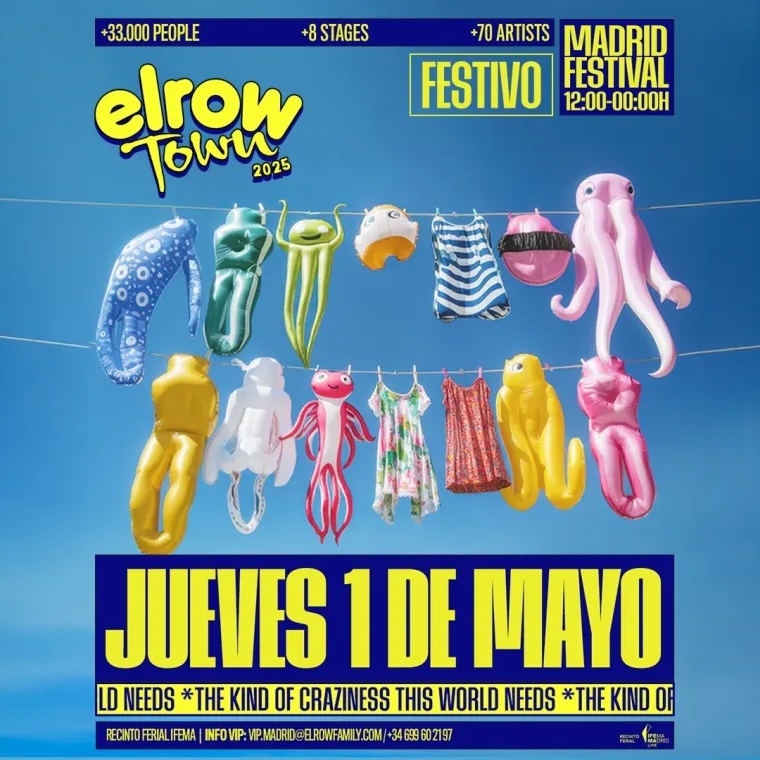 El 1 de Mayo de 2025 será doble festivo en Madrid. A la fiesta nacional debemos sumar el regreso de uno de los mayores festivales de música electrónica celebrados en la capital de España. ELROW reedita su festival elrow Town para llevar a Madrid lo mejor de su alocada y variopinta marca.