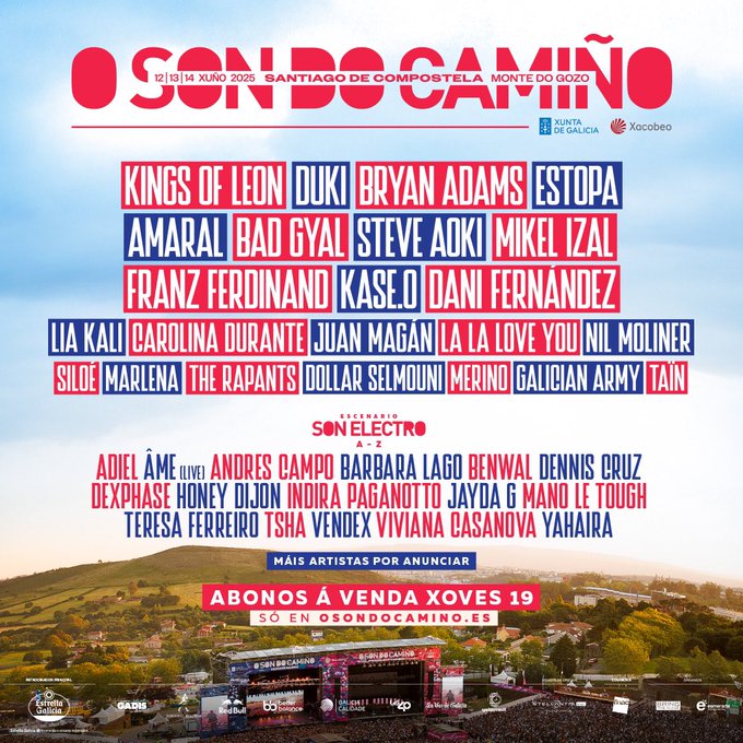 Uno de los grandes festivales españoles del último lustro ya se encuentra de lleno en el diseño de su próxima gran cita. O SON DO CAMIÑO volverá a ser el punto socio-musical de unión para miles de personas que, con la variedad y buen gusto por bandera, disfrutarán de estilos como el Rock, la música electrónica, ritmos Urbanos y Latinos, Pop, Indie y un sinfín de subgéneros. El festival, que tomará lugar los días 12, 13 y 14 de Junio en Santiago de Compostela, ya puede presumir de primeros artistas confirmados para su LineUp.