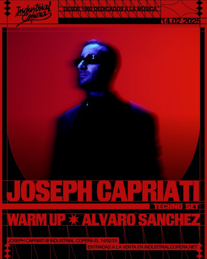 Industrial Copera (Granada) es amada por los artistas electrónicos por varias razones, por su atmósfera, por su mística, por su sistema de sonido, pero sobre todo porque saca lo mejor de ellos y les estimula para adentrarse en territorios musicales más arriesgados. Esto precisamente es lo que va a suceder con Joseph Capriati el próximo 14 de febrero, ya que el DJ napolitano nos ofrecerá un Techno Set con la misma energía que transmitió en su pasada actuación en Monegros.
