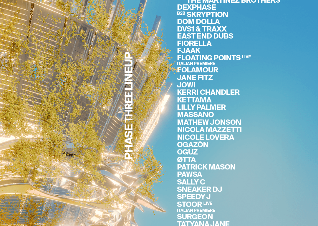 De nuevo el formato back to back vuelve a ser protagonista también en esta tercera fase, con nombres como Anyma B2B Solomun, Dennis Cruz B2B The Martinez Brothers, Dexphase B2B Skryption, destacando la presencia nacional de Dexphase, que repite tras su paso en 2024, o actuaciones conjuntas fuera de este formato como el combo de DVS1 & Traxx, oportunidades únicas para ver la interactuación de nombres referentes, actuando de manera conjunta. Destacan en este avance nombres referentes en el circuito internacional como Floating Points que presentará un show exclusivo Live Italian Premiere, FJAAK, Folamour, Kerri Chandler, Massano, Surgeon o Matthew Johnson, junto a nuevos protagonistas del circuito techno como Pawsa, Patrick Mason. The Lady Machine o Speedy J.