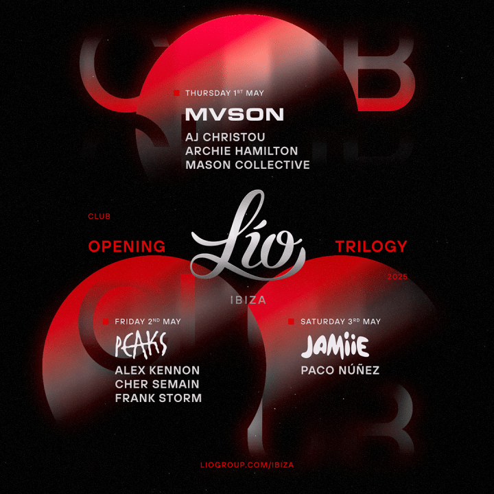 El jueves 1 de mayo, el público asistente tendrá la oportunidad única y exclusiva de disfrutar por primera vez en la Isla Blanca de MVSON. La icónica fiesta underground nacida en Manchester a manos de Mason Collective que se caracteriza por su camaleónica visión creativa y su propuesta tan innovadora como vanguardista ha elegido Lío para hacer su debut en Ibiza. Su line-up incluye las actuaciones de AJ Christou, fundador de Celesta Recordings y una de las figuras más importantes e influyentes de la escena contemporánea de Manchester, Archie Hamilton, creador de MicroHertz y considerado uno de los pioneros de lo que ha quedado en denominarse nuevo sonido europeo, y por supuesto, Mason Collective, el dinámico trío detrás de la promotora.