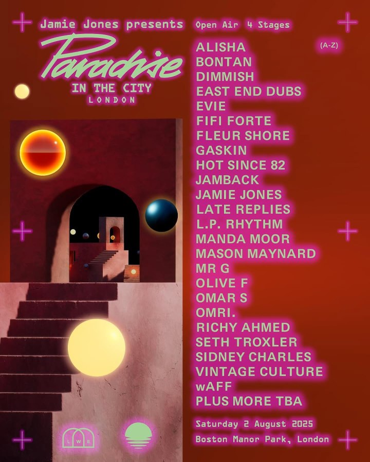 A falta de anunciar más nombres, hoy se han dado a conocer los de Vintage Culture, Seth Troxler, Hot Since 82, wAFF, Manda Moor, East End Dubs, Richy Ahmed y, por supuesto, el propio Jamie Jones. El sonido de vanguardia y la producción de última generación están garantizados gracias a los innovadores expertos en eventos, LWE, junto con la reconocida energía y las vibraciones de Paradise. Los asistentes al festival podrán recorrer 4 escenarios en el glorioso entorno de Boston Manor Park y encontrar más sets imperdibles de la talla de Alisha, Bontan, Dimmish, Fleur Shore, Mason Maynard, Mr G, Omar S y Sidney Charles.