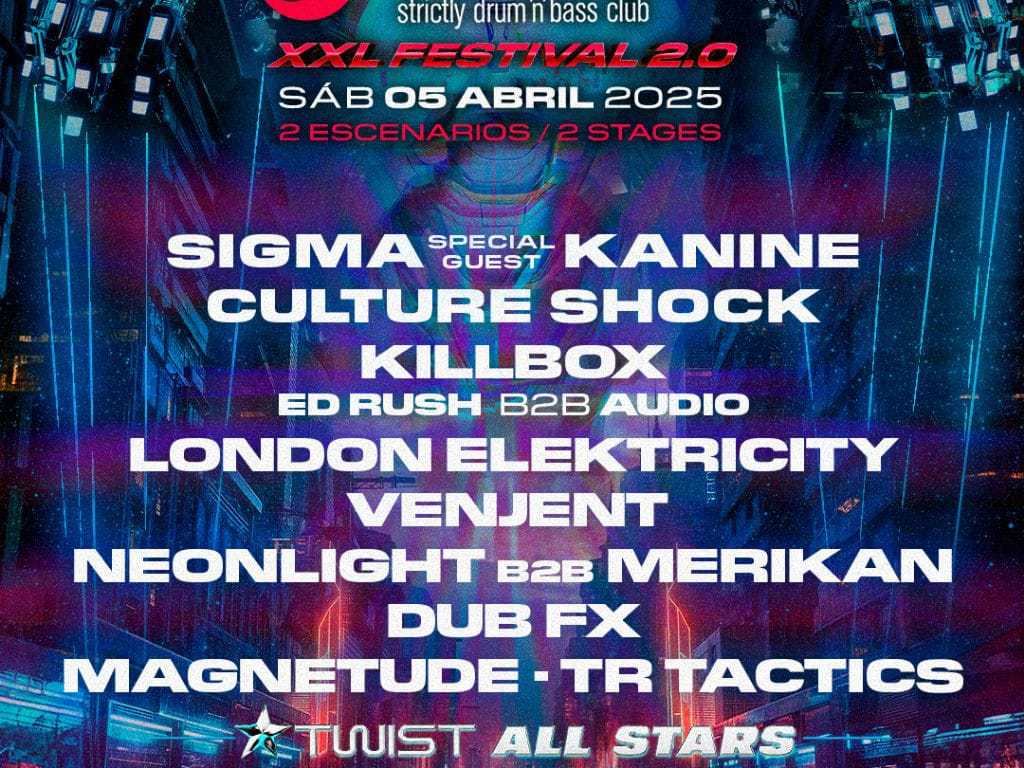 Grandes nombres del momento como la formación SIGMA, y esa versatilidad de géneros entre aromas melódicos y ritmos Liquid; CULTURE SHOCK y la contundencia del Dancefloor más eficaz del momento; KANINE y la combinación de de melodías y la fuerza del Jump; los ritmos Neurofunk de exponentes como KILLBOX (Audio x Ed Rush), MAGNETUDE o NEONLIGHT y MERIKAN uniendo fuerzas en B2B; o la locura del viral VENJENT, son algunas de las grandes apuestas de un evento que alcanza la categoría de festival. Junto a ellos estarán también grandes nombres de la escena nacional que nutren una propuesta dual (dos escenarios) que hará las delicias del público en un horario de 20:00 de la tarde a 06:00 de la mañana.