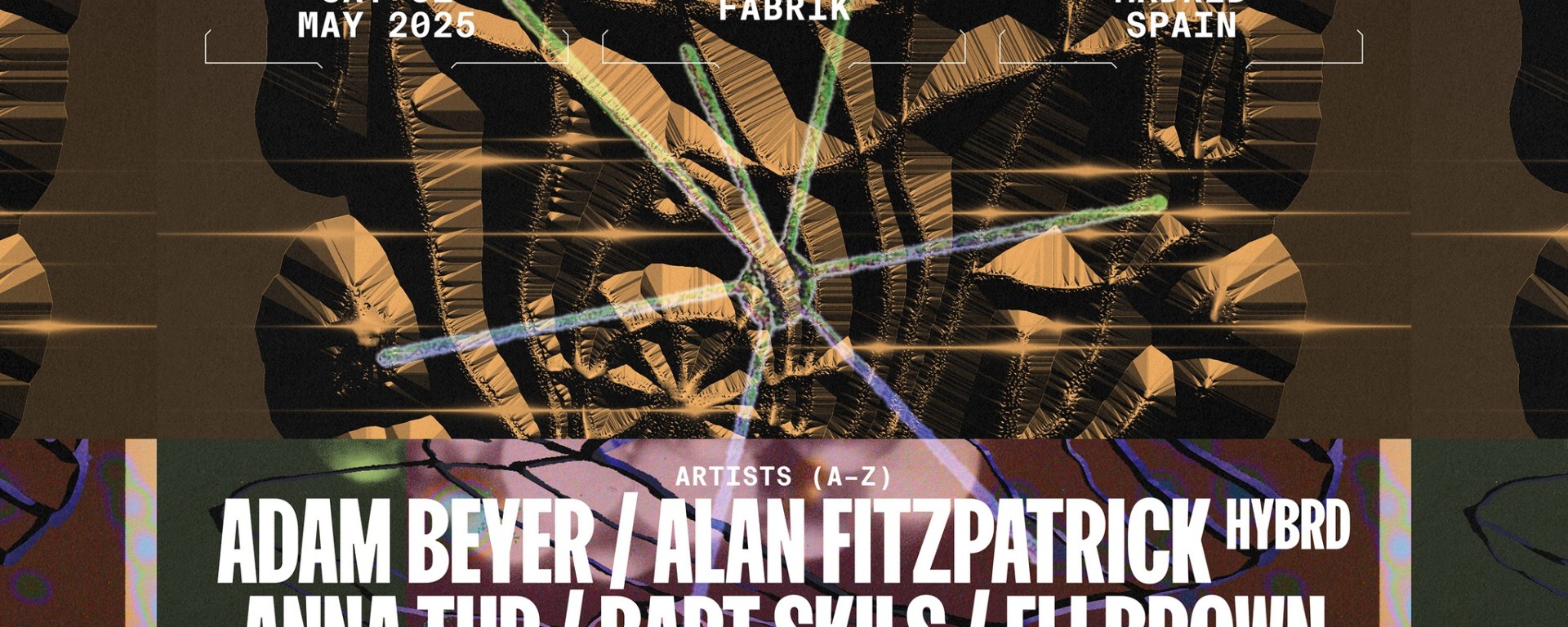 El sonido Techno más pegadizo, con aromas Diving y con esa oleada de New Techno tan especial será el gran líder de una velada que ya ha ganado miles de adeptos. El sueco ADAM BEYER, jefe de Drumcode, será el headliner principal del evento, pero no estará ni mucho menos solo. Referentes clásicos como ALAN FITZPATRICK, BART SKILS o PAN-POT y artistas que atraviesan un fantástico momento como ELI BROWN o SPACE 92 serán los acompañantes de lujo en un evento con aroma a festival. No faltarán nacionales de primera final como ANNA TUR, así como los residentes de FABRIK CÉSAR ALMENA y NUKE.