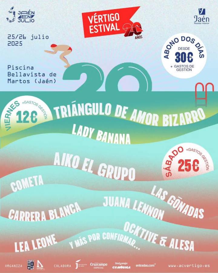 El vigésimo aniversario de VÉRTIGO ESTIVAL ya ha desvelado gran parte de la propuesta musical diseñada para celebrar tal importante cita con el mejor ambiente veraniego y festivo. El festival independiente llevado a cabo en la localidad jiennense de Martos ha ido presentando actuaciones que darán sonido y festividad a un evento que, con una carrera impecable llena de éxito y con gran personalidad, ya se prepara para alcanzar los 20 años los días 25 y 26 de Julio.