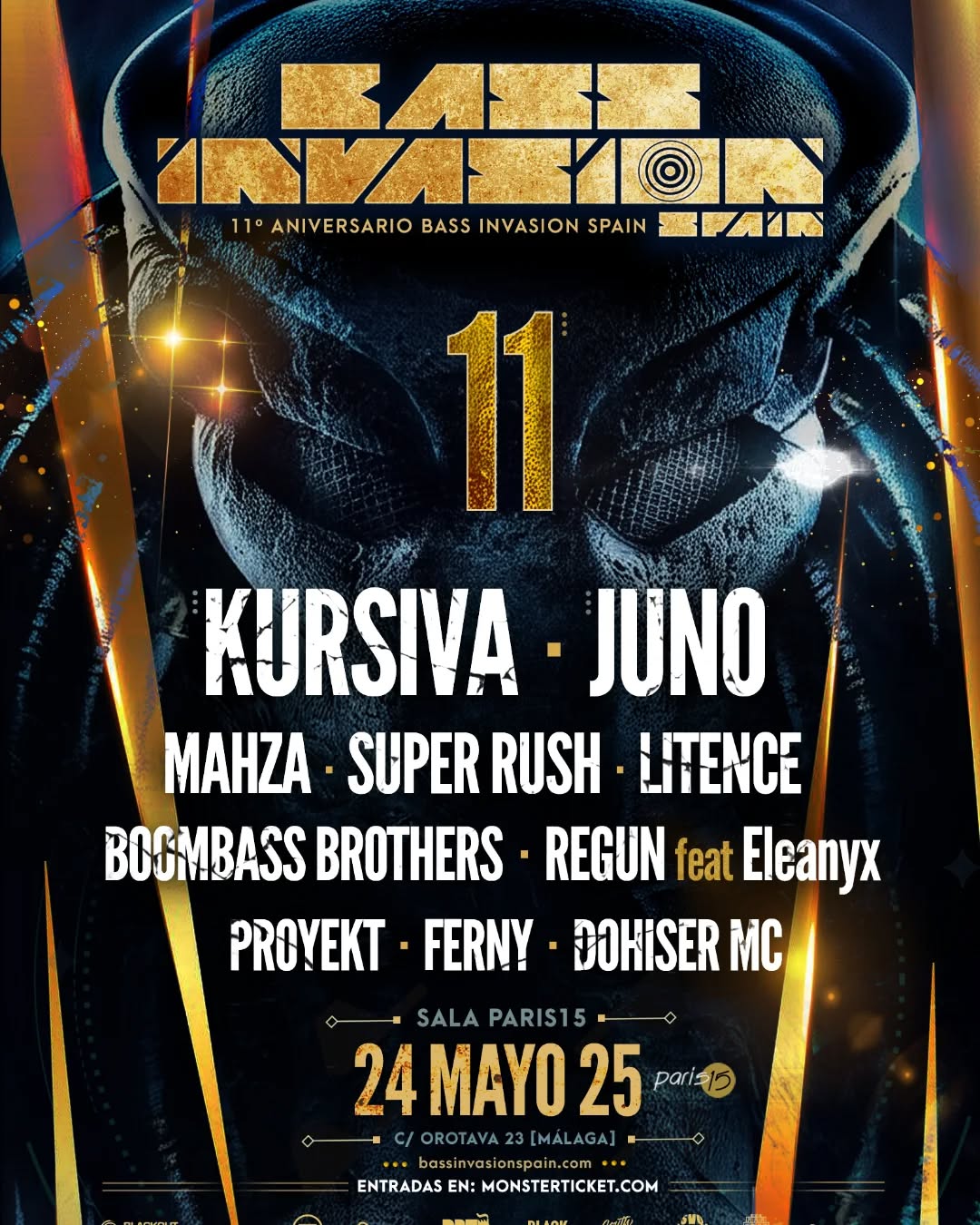 La promotora nacional BASS INVASION SPAIN ha presentado la fiesta programada para celebrar nada menos que su 11º Aniversario. Referentes del sonido Drum & Bass y Bass de nuestro país, la marca alcanza este cumpleaños habiendo contado con grandes artistas del género, quienes han hecho disfrutar a los aficionados en multitud de ocasiones. Esta celebración, fijada para el sábado 24 de mayo, tomará a la escena nacional como gran protagonista.