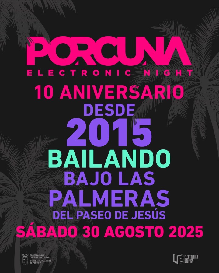 La mejor cita gratuita con la música Techno en Andalucía celebrará este verano su 10º Aniversario. El festival jiennense PORCUNA ELECTRONIC NIGHT alcanzará esta cifra tan especial haciendo disfrutar a sus aficionados de un evento que, creado y mimado con esmero durante la última década, ya inicia el camino hacia su nueva celebración.