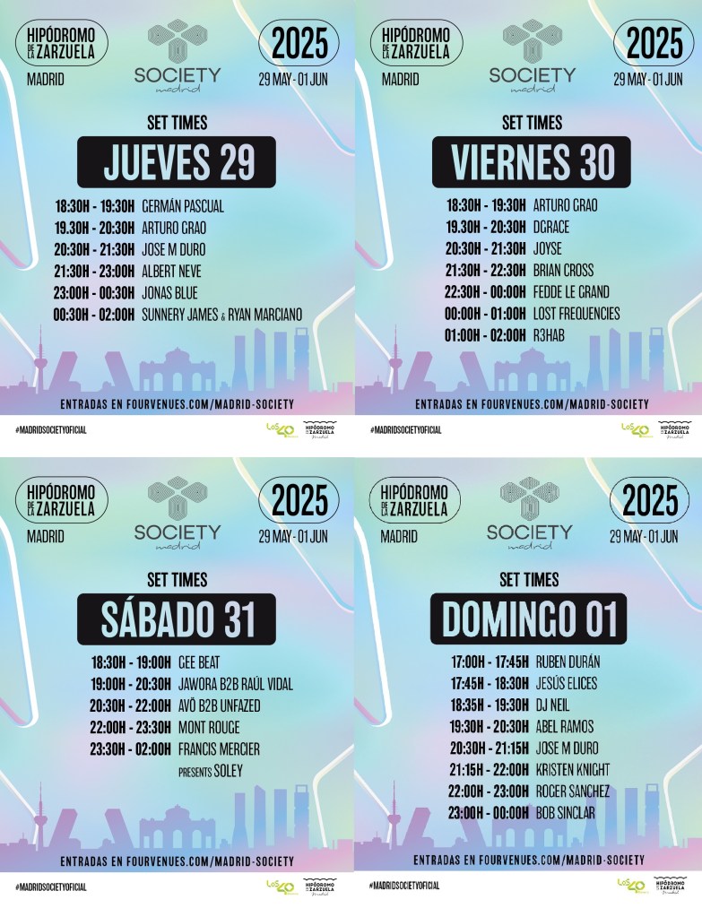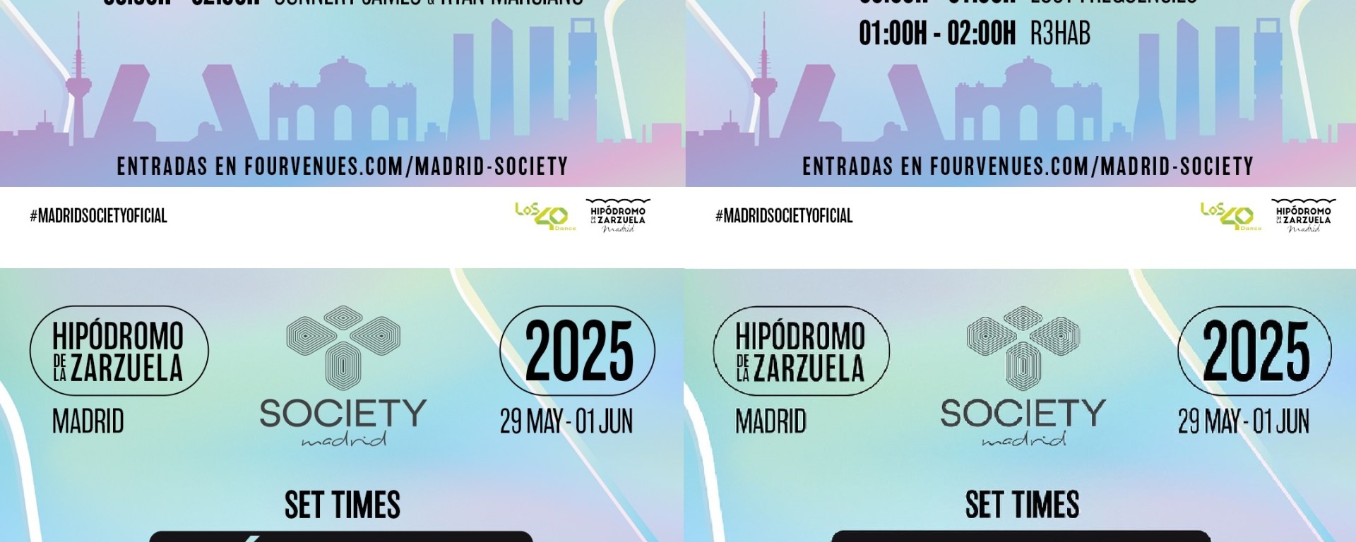 Todo está listo para que eche a rodar la primera edición de MADRID SOCIETY FESTIVAL. El festival de música electrónica celebrado en el Hipódromo de la Zarzuela reunirá a importantes artistas de la escena electrónica mundial como Lost Frequencies, Bob Sinclair, R3hab, Jonas Blue, Francis Mercier, Fedde LeGrand, Roger Sánchez o Sunnery James & Ryan Marciano del 29 de mayo al 1 de Junio.