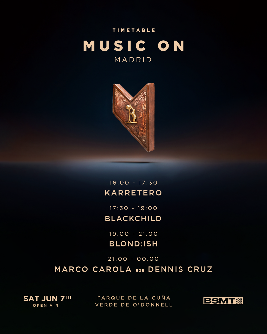Este sábado (7 de mayo) Music On llegará a Madrid para llevar a cabo un fantástico evento en el que el Tech-House será protagonista. Tras colgar el cartel de ‘No Hay Entradas’ y con un cartel liderado por Marco Carola (donde también estarán Dennis Cruz, BlackChild, Blond:Ish y Karretero), la cita ya encara la recta final para desatar la locura sobre el Parque de la Cuña Verde de O’Donell en el distrito de Moratalaz.