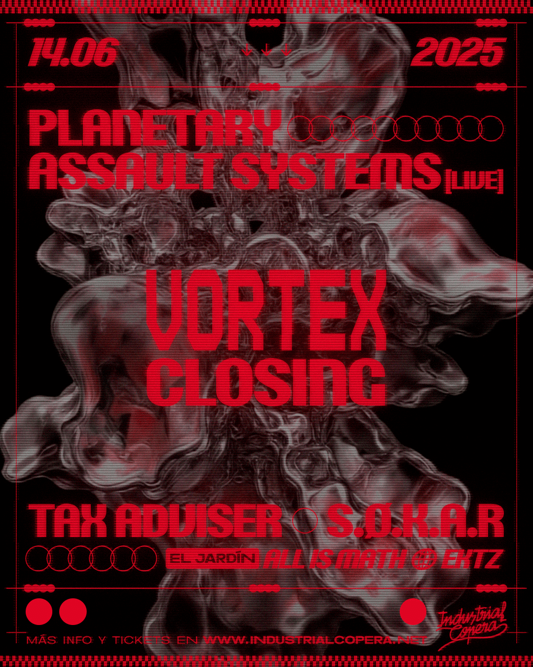 Industrial Copera ha vivido una temporada para la historia, un recorrido espectacular plagado de eventos memorables difíciles de igualar. Su programación siempre ha estado basada en la calidad y en la apuesta por el puro talento. Por eso no es de extrañar que el templo granadino fuera galardonado como Mejor Espacio de Música en Directo en los premios Aupa! que organiza el BIME. Industrial Copera ha conseguido lo que pocos clubs logran durante su existencia, transcender a su actividad para convertirse en un sentimiento, en un estilo de hacer las cosas y de entender la cultura clubbing. Para poner el broche final a esta temporada tendremos una edición muy especial de Vortex, una fiesta que se ha ganado el derecho a ser considerada una de las mejores de la escena. Y para su closing han diseñado un line up de esos que te reafirman en tu amor a la música electrónica.