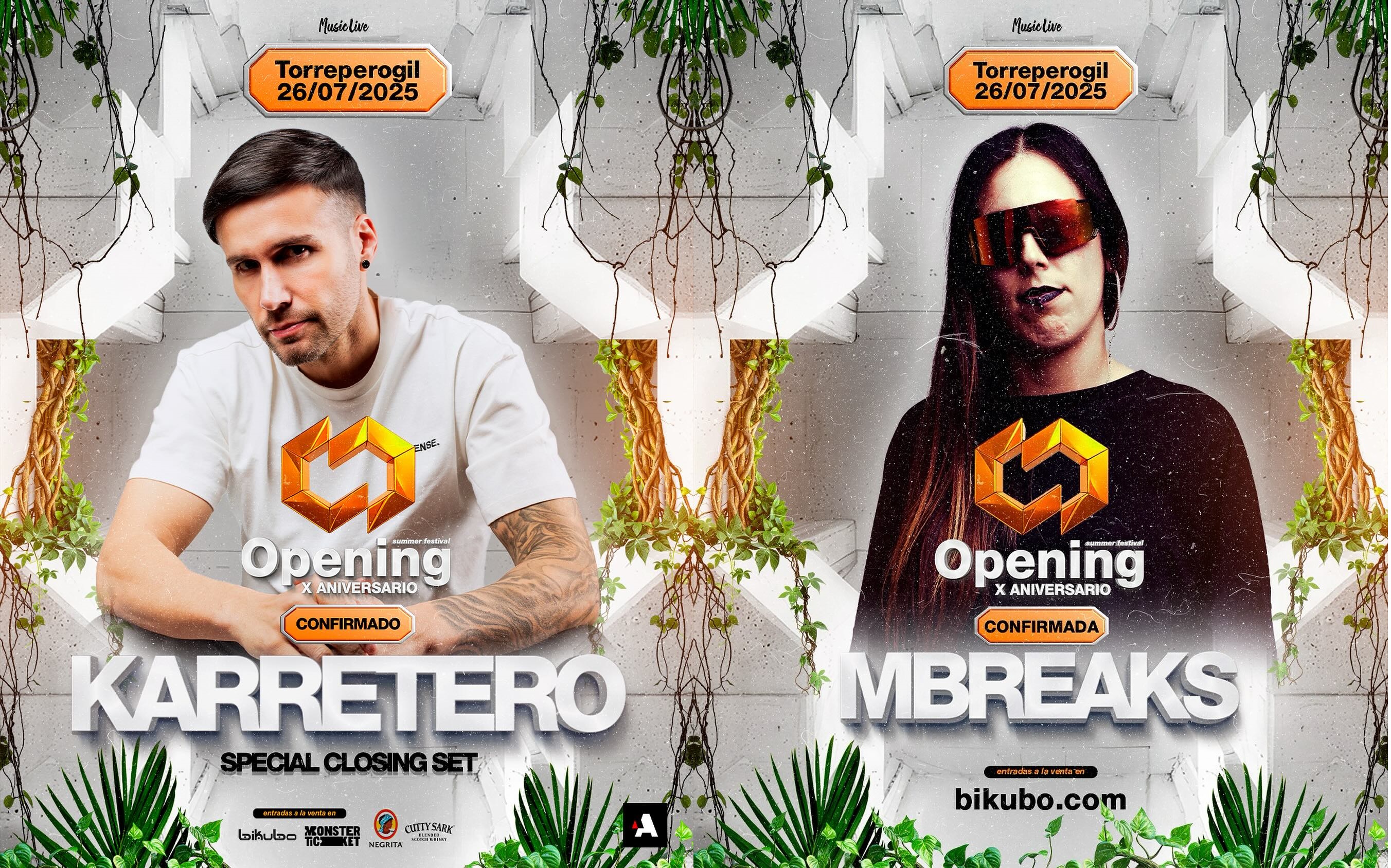 Dos debutantes como KARRETERO y MBREAKS añaden más talento al LineUp de Opening Summer Festival. El primero de ellos se ha convertido por méritos propios en uno de los grandes referentes del sonido Tech-House nacional. Con lanzamientos de calado internacional y con un ritmo muy intenso y pegadizo, será el encargado de realizar el closing set del festival. Por su parte, MBreaks traslada el éxito a los ritmos rotos, de los que es una de las grandes figuras de España. Presente en los eventos más icónicos y capaz de hacer disfrutar al público con su energía, será otro de los puntos fuertes en el elenco de Breakbeat.