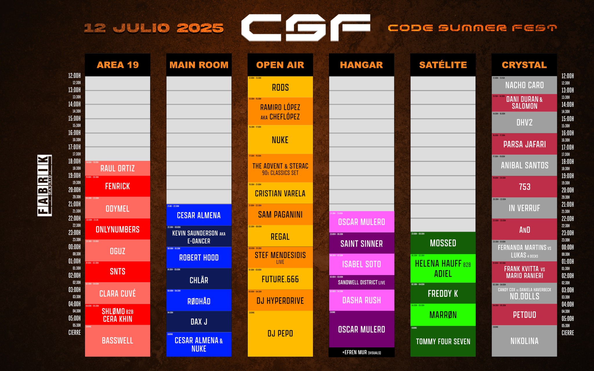 Os animamos a que no os perdáis Code Summer Fest en Fabrik porque va a ser una experiencia inolvidable, y sí, no es solo un Festival, es una auténtica experiencia audiovisual bajo al ritmo del Techno.