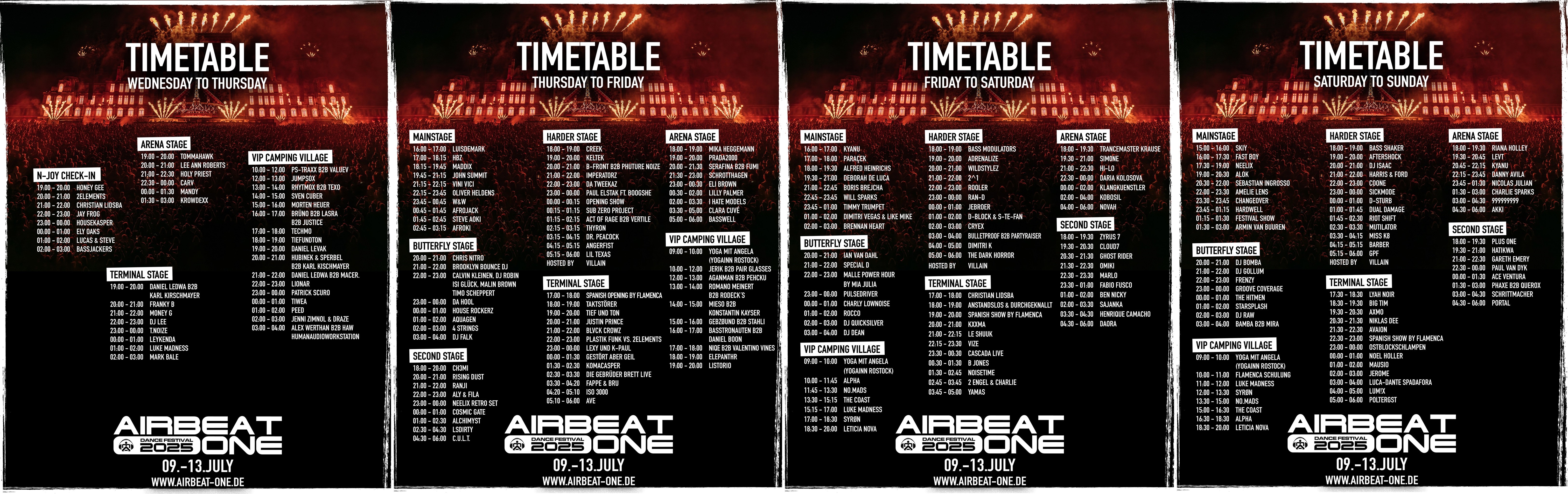 Los horarios de actuaciones ya han sido publicados, pudiendo ubicar a cada artista por escenarios y días de actuación, lo que permite organizar un fin de semana musicalmente apoteósico a los aficionados. ¡Descubre ya la programación y horarios completos al detalle de un LineUp en el que sobresalen figuras como Hardwell, Armin van Buuren, Afroki, Dimitri Vegas & Like Mike, Timmy Trumpet, Oliver Heldens, W&W, Amelie Lens, Boris Brejcha, Deborah de Luca, Brennan Heart, Vini Vici, Klangkuenstler, Eli Brown, 999999999, I Hate Models, HI-LO, Angerfist, Wildstylez, D-Block & S-Te-Fan, Miss K8, Coone, Dr Peackock, Aly & Fila, Paul van Dyk o Gareth Emery entre muchos otros más!: