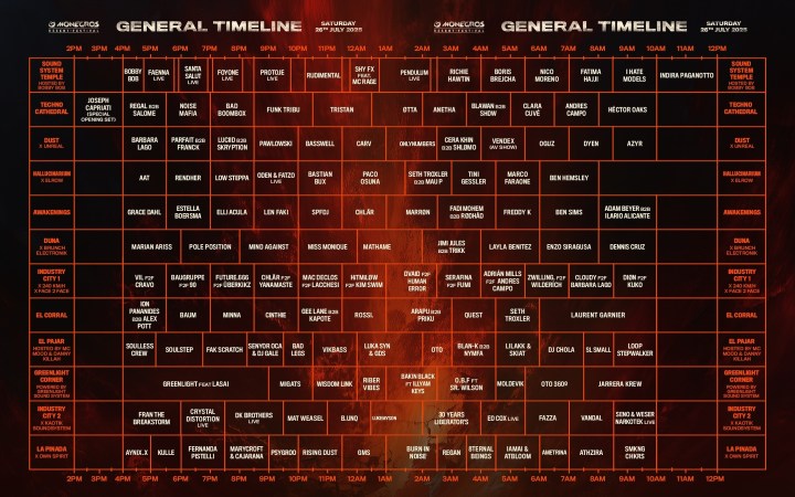 Una vez desvelado el cartel completo para este verano y encarada ya la recta final hacia su nueva edición, el festival MONEGROS he presentado los horarios oficiales de actuaciones para su nueva cita musical. El sábado 26 de julio la magia del Techno (Acid, Industrial, Rave, Minimal, Tech, Hard, Diving, Peak, Schranz…), House, Psy Trance, Drum & Bass, Urban y algún que otro sonido más como invitado recorrerá el desierto aragonés con una auténtica ciudad musical compuesta por 11 escenarios por los que pasarán grandes referentes musicales como Adam Beyer, Richie Hawtin, Boris Brejcha, Pendulum (Live), Seth Troxler b2b Mau P, Paco Osuna, Nico Moreno, Rudimental, Baswell, Ben Sims, Mathame, Onlynumbers, Mat Weasel o Foyone entre muchos otros.