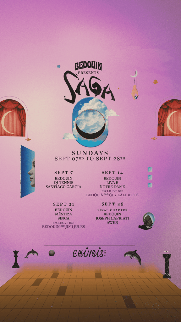 Después de un memorable mes de agosto, Saga regresa a Chinois Ibiza con otra fiesta en la que los sonidos house serán los grandes protagonistas. El pasado evento fue una oda a la música electrónica que trae vibraciones positivas a la pista de baile donde todos, independientemente de su edad, género y nacionalidad, se encuentran bailando en Chinois Ibiza. Bedouin ha conseguido crear una atmósfera especial e inmersiva gracias a la cual te transportarás a un estado nunca antes visto en la isla.