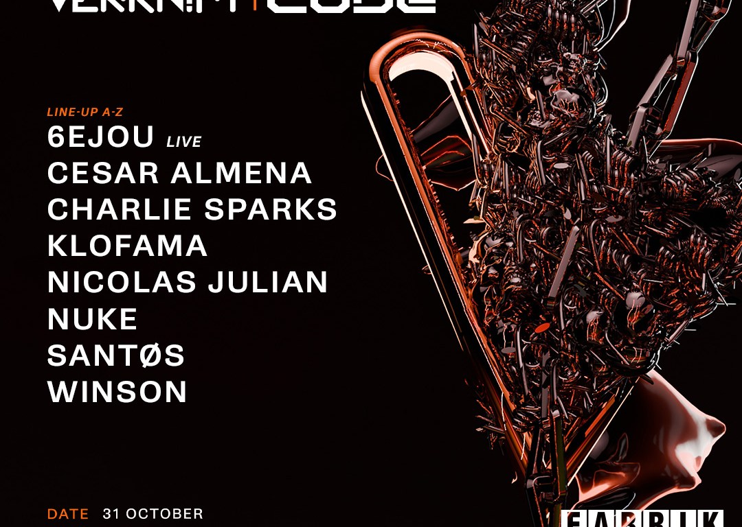 FABRIK encara una nueva temporada cargada de sorpresas y desafíos. El icónico club madrileño, que ya ha regresado a la actividad entre vítores, prepara ya una cita de dimensiones colosales: el próximo 31 de octubre, en pleno Halloween, la legendaria marca CODE, símbolo indiscutible de la cultura techno en Madrid, se fusionará por primera vez con la aclamada sesión neerlandesa VERKNIPT, dando forma a una alianza inédita que promete sacudir los cimientos de la electrónica europea.