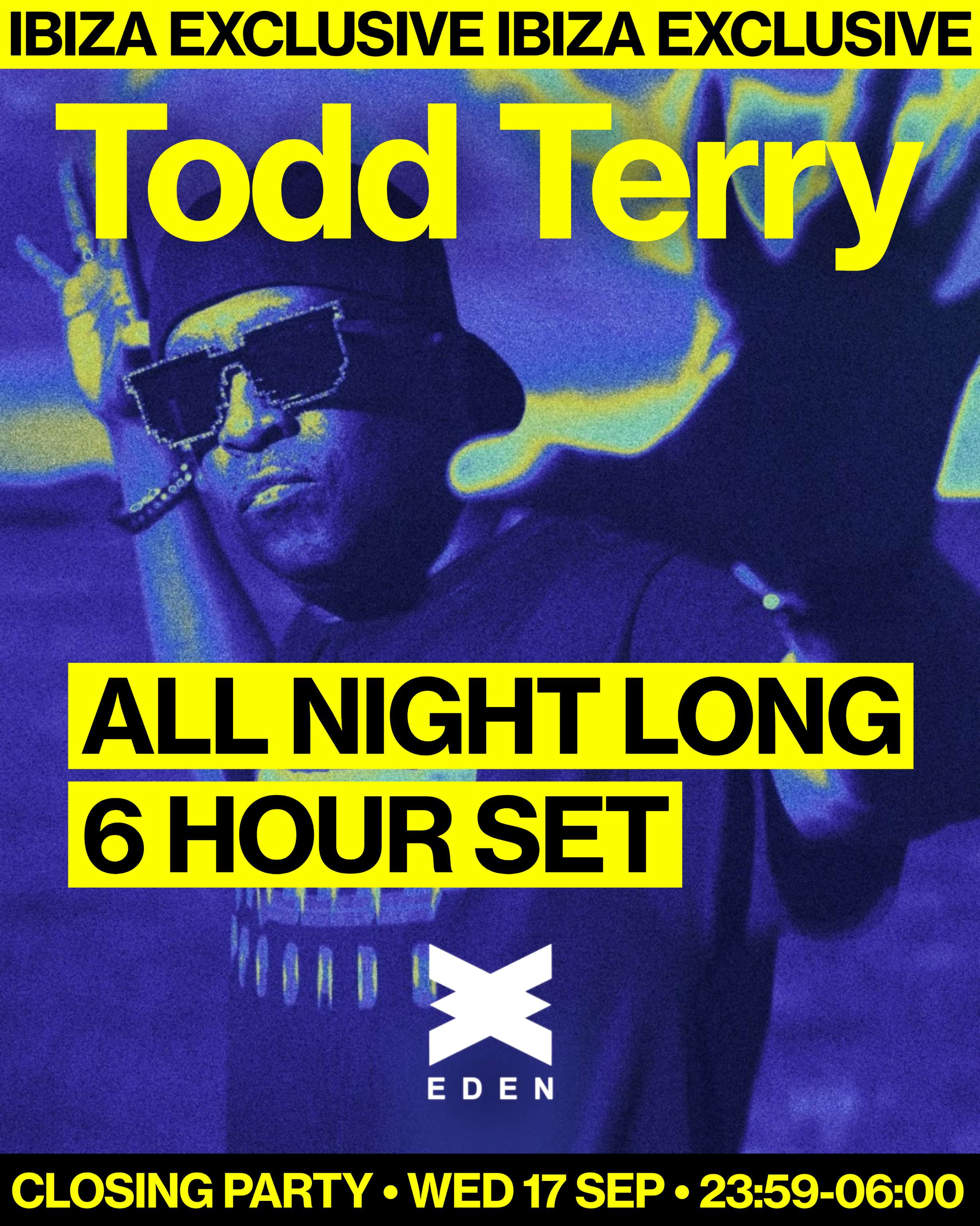 Para su última sesión, el miércoles 17 de septiembre, el DJ y productor de Brooklyn se subirá solo a la cabina para ofrecer un set extendido de 6 horas que pondrá el broche de oro a una temporada de éxito en Eden Ibiza. Una sesión especial en la que con toda probabilidad sonarán algunos de los hits que le han convertido en uno de los productores de mayor éxito de la escena electrónica de todos los tiempos. ¿Listos para despedir Todd Terry Freeze Project a lo grande en Eden?