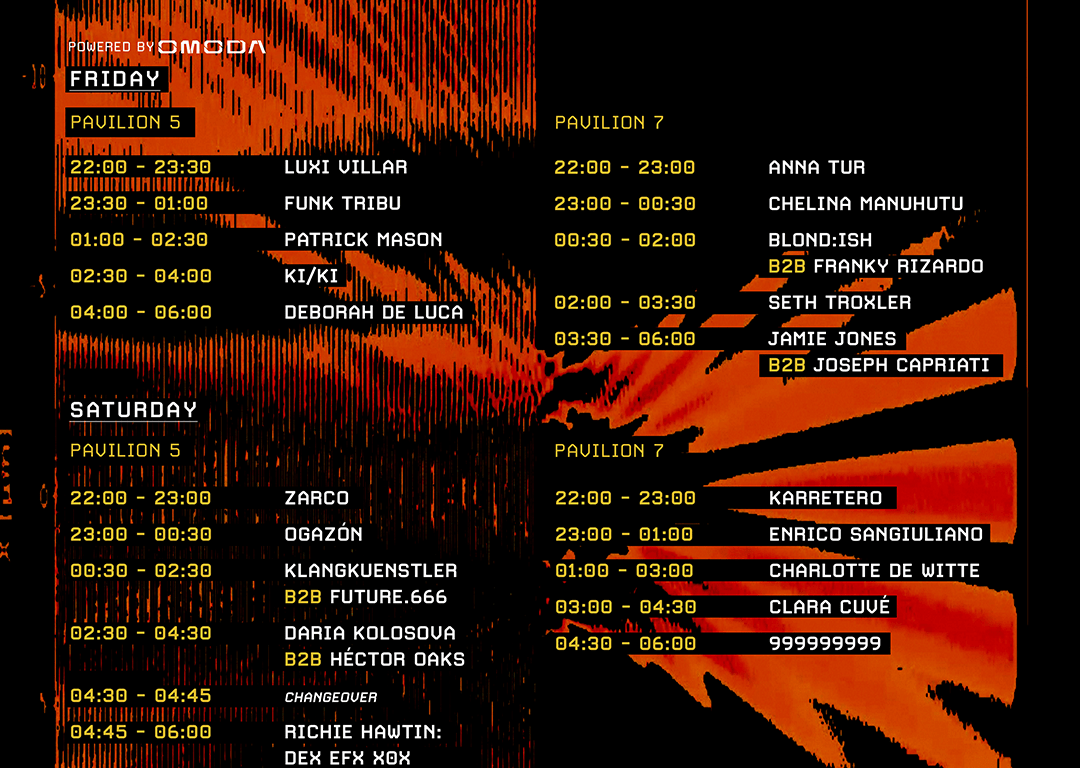Este fin de semana Madrid vibrará al son de la segunda edición de TIME WARP. El festival llevará a IFEMA lo mejor del sonido Techno en diferentes registros, ofreciendo dos jornadas (viernes 10 y sábado 11 de Octubre) de alta intensidad sonora, en la que referentes como Charlotte de Witte, Richie Hawtin, Jamie Jones b2b Joseph Capriati, Seth Troxler, Klangkuenstler b2b Future.666 o Deborah de Luca entre otros.