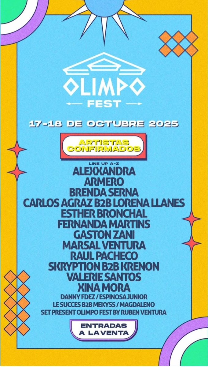 Desde el Techno con más reposo y aromas Melodic y Tech más sutiles, hasta la locura del Hard actual (desde su arista melódica Bouncy hasta la dureza del Schranz), grandes nombres de la escena nacional (con algunos invitados internacionales) se citan en Olimpo Fest para hacer bailar a los aficionados de inicio a fin. ALEXXANDRA, FERNANDA MARTINS, BRENDA SERNA, SKRYPTION B2B KRENON y RAÚL PACHECO lideran una cita llena de nombres de sobra conocidos por el público. No se quedan atrás otros shows como los de ARMERO, MARSAL VENTURA, ESTHER BRONCHAL, VALERIE SANTOS, XINA MORA el b2b entre CARLOS AGRAZ y LORENA LLANES o GASTÓN ZANI, quienes con ritmo y versatilidad manifestarán un amplio espectro sonoro dentro del Underground.