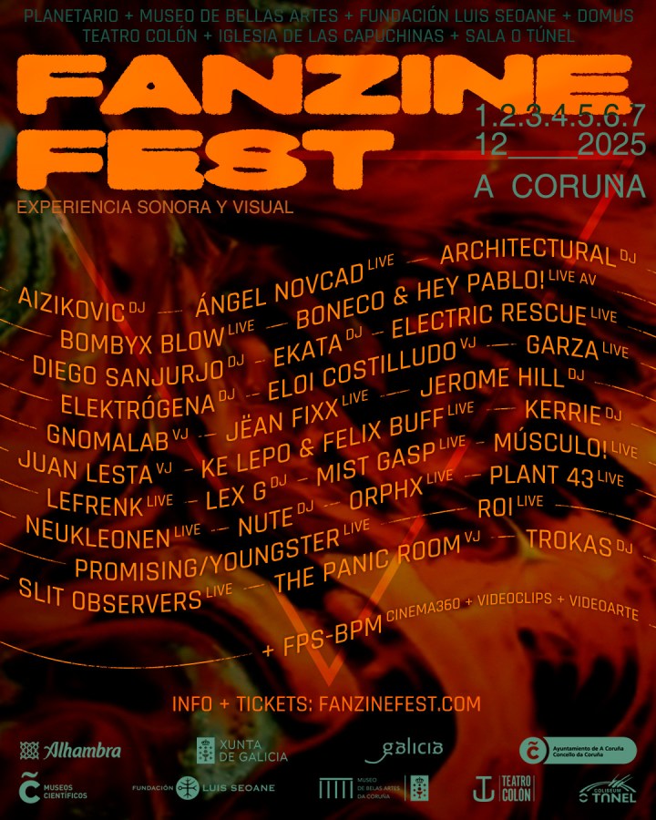Del 1 al 7 de diciembre, A Coruña volverá a convertirse en epicentro de la creación electrónica y audiovisual con una nueva edición de Fanzine Fest, el festival de vanguardia que desde hace más de una década impulsa la promotora coruñesa Fanzine Project. La cita mantiene su vocación de conectar la escena internacional con el talento gallego y estatal, al tiempo que amplía su presencia en la ciudad con tres nuevos espacios: el Museo de Bellas Artes, la Iglesia de las Capuchinas y el Teatro Colón, que se suman a sedes ya habituales como el planetario de la Casa de las Ciencias, la Domus, la Fundación Luis Seoane y la Sala O Túnel.
