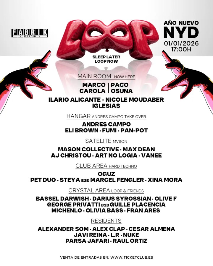 Esta importante cita, que contará también con el fabuloso elenco de djs residentes de FABRIK y LOOP (ALEXANDER SOM, ALEX CLAP, CESAR ALMENA, JAVI REINA, L.R., NUKE, PARSA JAFARI y RAÚL ORTIZ), permite tener variedad de sonidos, versatilidad de aromas y una confluencia de estilos más clásicos con otros más vanguardistas. Toda esa malgama sonora se traduce en una fiesta electrónica sobresaliente que recibirá por la puerta grande a un 2026 que seguro será fantástico para la escena musical. ¿Listos para la primera gran cita del próximo año?