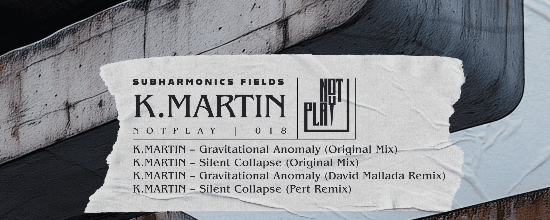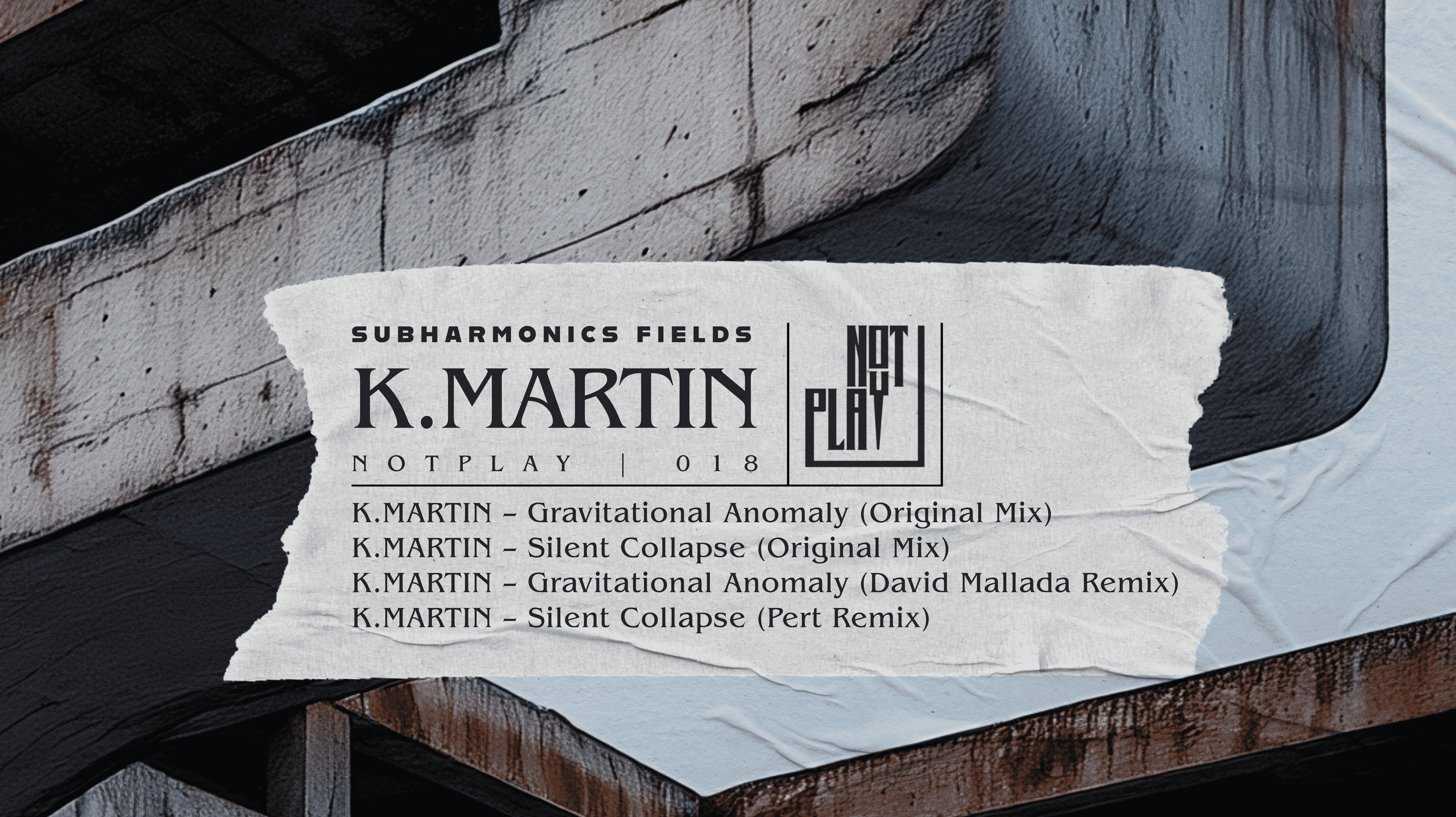 El DJ y productor sevillano K.MARTIN, tras una década en la escena, se encuentra en el momento más maduro de su carrera. Con el EP ¨Subharmonics Fields¨ lanzado en el sello Not Play Records de David Mallada, pretende mostrar su visión más honesta de lo que significa el techno hoy día. Tanto el sonido de los dos tracks originales como las colaboraciones representan un pequeño cambio de identidad del artista pero sin abandonar sus raíces grooveras, oscuras e hipnóticas. En palabras del propio artista, “Subharmonics Fields” representa ¨esa energía magnética subterránea que conecta con el instinto y te arrastra sin resistencia¨.