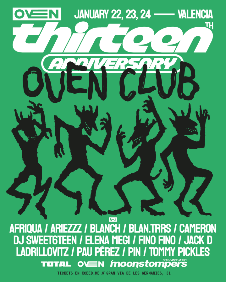 Pero esto no acaba aquí, traspasará fronteras, ya que el aniversario también nos llevará hasta Berlín el 30 de enero, a Hoppetosse, para una noche muy especial junto a artistas y amigos de la casa. Será una fecha para celebrar todo lo que nos une: la música, el baile y la familia que se ha formado alrededor de Oven. El line up estará formado por Jack D, Alexia , Felipe Valenzuela, Pin, Pau Pérez, Sueezo, Blanch, Blan.trrs, Ariezzz , Dammatic, Ladrillovitz y Cheriii. Consigue tus entradas aquí