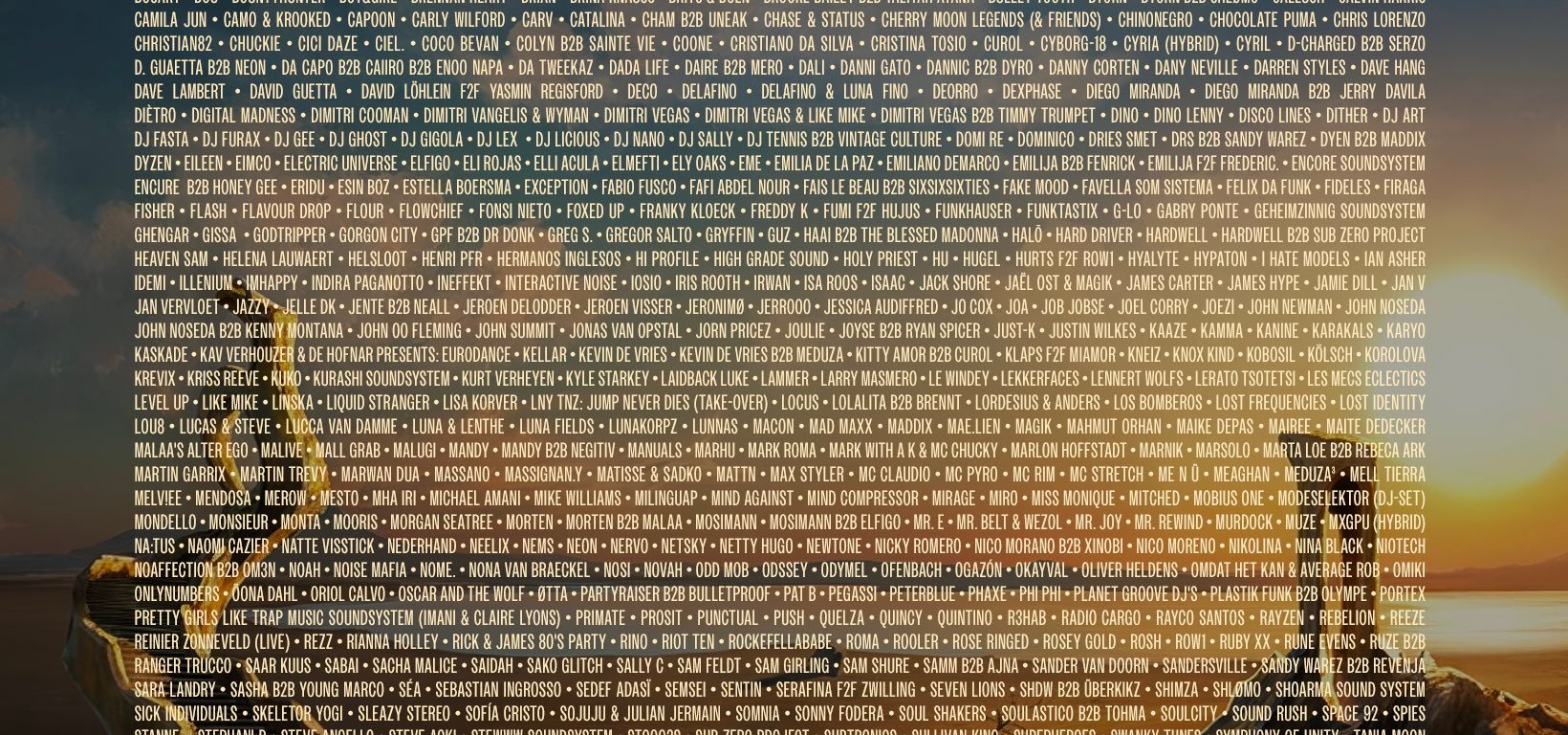 En un extenso y asombroso primer avance de cartel, Tomorrowland apuesta por el talento desde diferentes aromas sonoros. En grandes grupos podemos destacar a las grandes estrellas del EDM, quienes desde la versatilidad nunca fallan (Calvin Harris, David Guetta, Dimitri Vegas & Like Mike, Hardwell, Martin Garrix, Steve Aoki, Steve Angello, Afrojack, Alesso, Kaskade, Timmy Trumpet, Blasterjaxx…); el House más suculento y variado, recorriendo aromas Tech, Future, Deep o Melodic (Fisher, Oliver Heldens, Odd Mob, John Summit, James Hype, Hugel, Meduza, Lost Frequencies, Mr Belt & Wezol, Vintage Culture, Wade…); el poderío de un Techno a caballo entre el sonido clásico y los ritmos trendy (Amelie Lens, Reinier Zonneveld, Massano, Space 92, Nico Moreno, Sara Landry, I Hate Models, Kobosil…), el Bass atravesando uno de sus mejores momentos gracias al Drum & Bass, Dubstep y Future Bass (Chase & Status, Malaa’s alter Ego, Wilkinson, Murdock, Sullivan King, Netsky, Andromedik, Camo & Krooked, Subtronics, Seven Lions, Illenium, Borgore…), la contundencia sonora del mejor Hardstyle (Sub Zero Project, Brennan Heart, Da Tweekaz, Hard Driver, Coone, Isaac, Warface, Rebelion…), así como el siempre seguido sonido Trance y Psy (Armin van Buuren, Indira Paganotto, Vini Vici, Xijaro & Pitch...) entre otros muchos estilos.