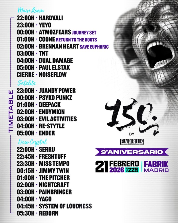 El próximo 21 de febrero de 2026, 150 By Fabrik celebrará su 9º Aniversario en Fabrik Madrid, consolidándose como una de las fiestas más importantes del hard dance en España. Nueve años después de sus primeras ediciones, la fiesta ha sabido mantenerse como un referente internacional, combinando producción de primer nivel, artistas históricos y talento emergente, y conectando distintas generaciones sobre la misma pista.