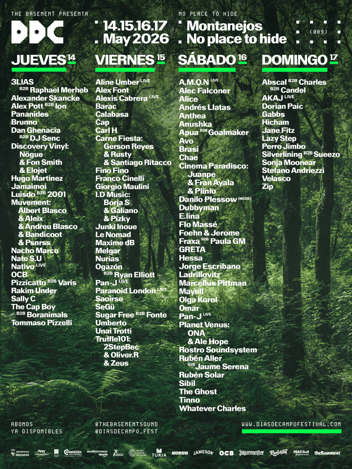 Si algo hace especial a Días de Campo, es que los artistas no solo vienen a trabajar, su mayor motivación es vivir el festival como parte de la comunidad. Montanejos es su burbuja, un espacio donde desconectar y disfrutar de la música electrónica desde otra perspectiva. Nombrar a todos y cada uno de los artistas que participarán en la novena edición de Días de Campo es una odisea. Entre todos ellos destacamos a Barac, Danilo Plessow (MCDE), Dan Ghenacia, DJ Senc, Jane Fitz, Marcellus Pittman, Ogazón, Ryan Elliott, Olga Korol, Paranoid London, Saoirse, Sonja Moonear, The Ghost y Zip. Pero no hay que olvidar que la filosofía del festival también se basa en la promoción de artistas locales, los verdaderos pilares de este proyecto.