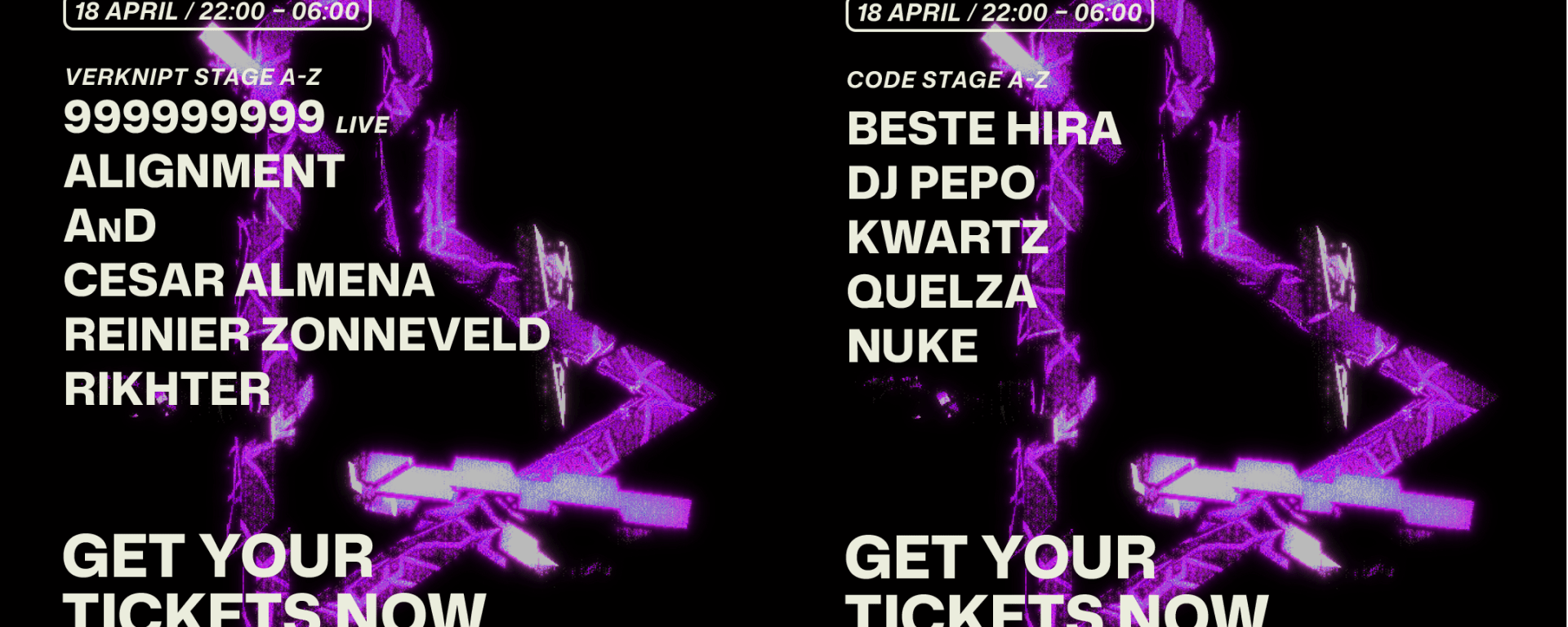 El cartel reúne dos de los directos más destacados de la escena: el dúo italiano 999999999 y el holandés Reinier Zonneveld, con propuestas marcadas por el sonido ácido y las influencias industriales. A ellos se suma la contundencia melódica de Alignment, uno de los nombres clave de KNTXT; el enfoque industrial de Rikhter, vinculado a Tote Sonne y la energía de AnD, que transita entre el hard techno y el hardcore. La apertura correrá a cargo de César Almena, reconocido por su capacidad para leer la pista en cualquier contexto.
