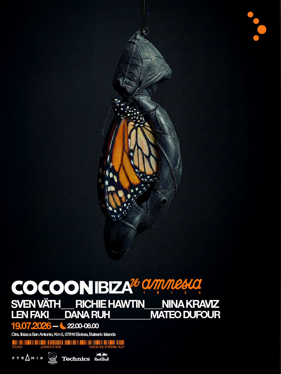 El 19 de julio de 1999, Cocoon celebró su primera fiesta en Amnesia Ibiza, el 19 de julio de 2026, exactamente en la misma fecha, la mítica fiesta vuelve a tomar el control de su hogar 27 años después. En Cocoon, siempre se busca volver a lo básico y a la esencia de la música electrónica de baile, relegando la cultura VIP a un segundo plano, promoviendo sesiones más largas y permitiendo que los DJs invitados exploren un territorio más amplio y se ganen la confianza del público. Este mismo enfoque musical se refleja en las fiestas, dondequiera que se celebren.