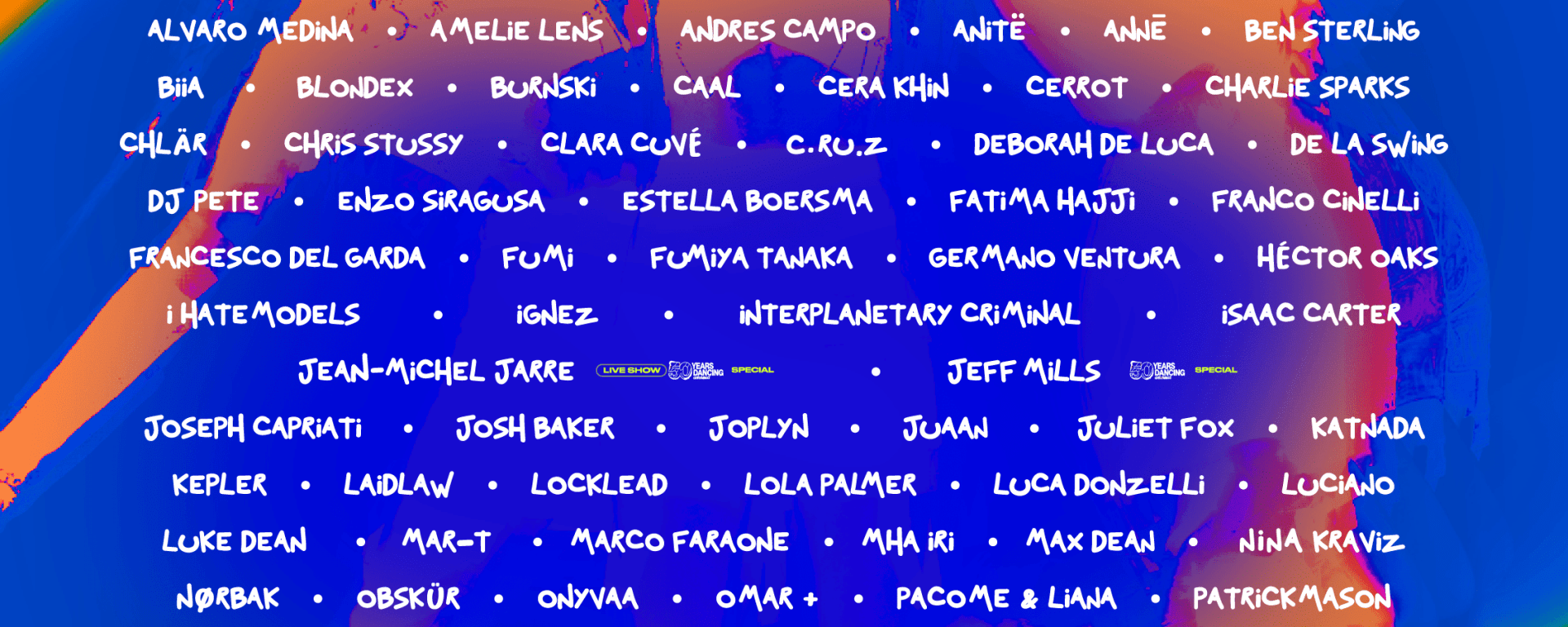 Dos leyendas indiscutibles sobresalen en un cartel de otro planeta, Jeff Mills y Jean-Michel Jarre actuarán en Pyramid para dotar a la fiesta de una pátina histórica y para celebrar el 50 aniversario de Amnesia Ibiza. Tampoco faltarán a su cita clásicos como Richie Hawtin, Ricardo Villalobos y Luciano, tres artistas que han aportado su talento a la programación de la fiesta casi desde su nacimiento. No os podéis perder a artistas internacionales de la categoría de Amelie Lens, Joseph Capriati, Josh Baker, Nina Kraviz, Hector Oaks, Andres Campo, Chris Stussy, Deborah de Luca, Seth Troxler, 999999999 o Sonja Monear. Los sonidos más potentes no podrían faltar a su cita con Pyramid, por eso sus máximos exponentes se pasarán por sus cabinas. Fatima Hajji, Adrian Mills, Fumi, I Hate Models, Clara Cuve, Blondex, Charlie Sparks, son algunos de los nombres que nos harán bailar como que no hubiera un mañana.