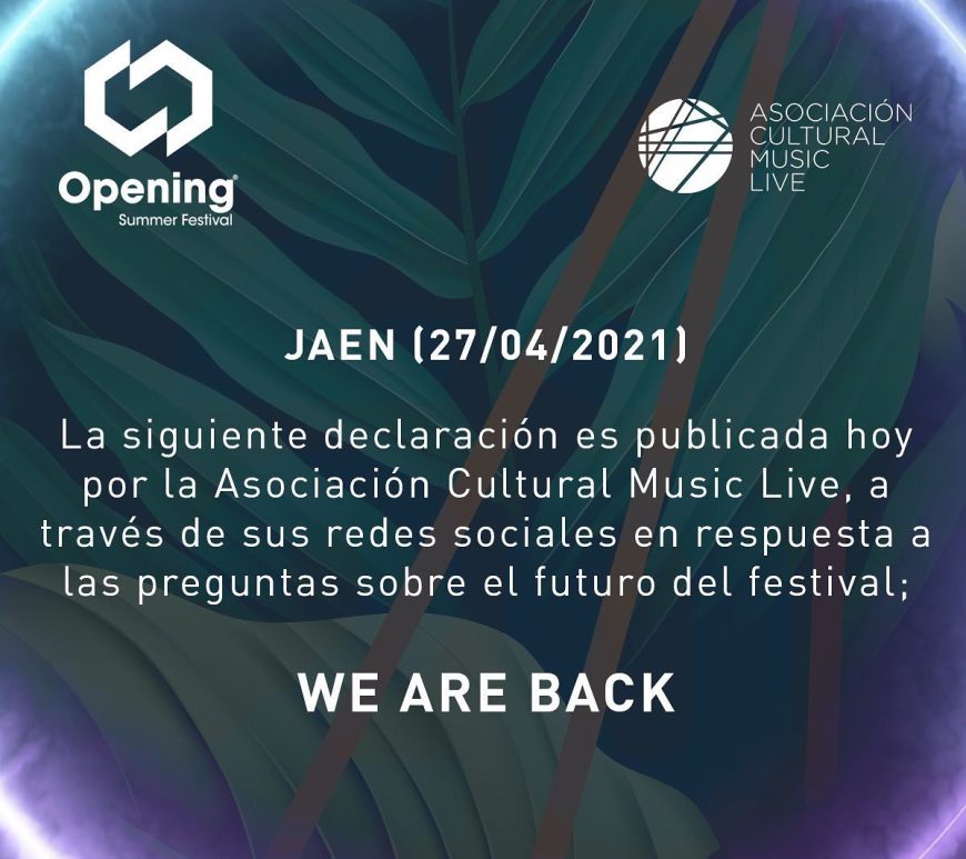 Valientes y confiados en hacer las cosas bien, Opening Summer Festival retornaba el pasado mes de Julio para mandar al carajo al virus (con todas las medidas pertinentes, eso sí) haciendo que la música regresara como dios manda. El festival de Torreperogil (Jaén) vivió una fantástica jornada musical que ya ha quedado plasmada en su genial Aftermovie. Con instantáneas de los Cloonee, Popof, Viviana Casanova, … Continúa leyendo Aftermovie Opening Summer Fest 2021