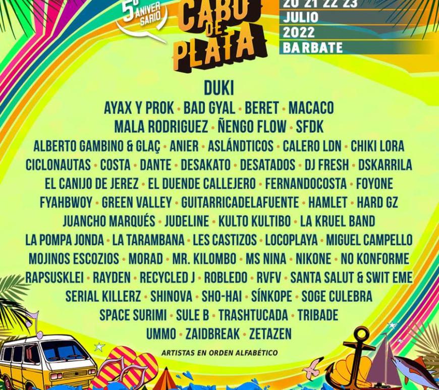 Buen ambiente, festividad, playa y música. CABO DE PLATA reúne todos los alicientes para hacer que muchos elijan al festival andaluz como el punto de inicio de sus vacaciones veraniegas. El evento celebrado en Barbate (Cádiz) ha presentado los horarios de actuaciones de una edición que promete ofrecer grandes emociones. Sonidos urbanos, latinos, aromas diversos que van desde el Pop hasta la electrónica pasando por … Continúa leyendo Horarios de actuaciones Cabo de Plata 2024