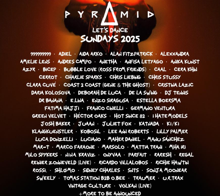 Pyramid revela sus primeros artistas para esta temporada 2025 de los domingos en el icónico club Amnesia. Con una cuidada selección que combina talento emergente, grandes nombres internacionales y figuras emblemáticas de la isla, Pyramid sigue consolidando su identidad como referente de autenticidad, sonidos sin filtros y una atmósfera inigualable. Su propuesta invita a revivir el espíritu más puro del clubbing a través de una … Continúa leyendo Pyramid Ibiza ya tiene sus primeras confirmaciones para su verano en Amnesia