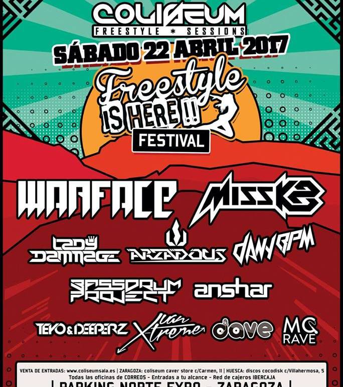 Zaragoza acoge hoy un gran evento cargado de lo mejor de la música hard. Coliseum Freestyle Sessions presenta el evento Freestyle Is Here, donde 2 grandes cabezas de cartel internacionales, acompañados de algunos de los mejores djs hard de España harán bailar a centenares de personas en una noche muy especial. Los protagonistas de este evento serán la ucraniana MISS K8 y el holandés WARFACE. … Continúa leyendo Coliseum Freestyle Sessions presenta: Freestyle Is Here Festival (22 Abril, Zaragoza)
