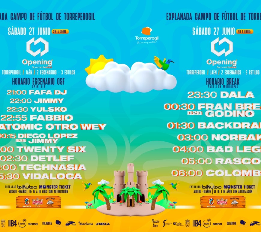 Todo está prácticamente listo para una nueva edición de OPENING SUMMER FESTIVAL. El evento de Torreperogil (Jaén) celebra este sábado 26 de Julio un Décimo Aniversario que servirá para poner fin a esta etapa del festival. Con una dualidad de Breakbeat durante la tarde-noche y Tech-House por la noche y la madrugada, los horarios de actuaciones han sido desvelados para que todos los aficionados puedan … Continúa leyendo Horarios Opening Summer Fest 2025