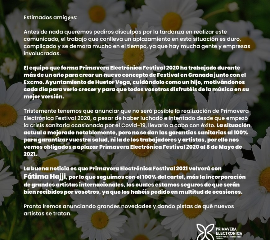 El mejor sonido electrónico brillará por todo lo alto el próximo sábado 7 de mayo gracias a una nueva edición del festival Primavera Electrónica. Granada acogerá un espectacular evento que, gracias a la visita de varios referentes de primer nivel del Tech-House mundial, hará las delicias de un público que no parará de bailar en toda la jornada. Entre lo más llamativo del cartel podemos … Continúa leyendo Primavera Electrónica completa el LineUp de su nueva edición