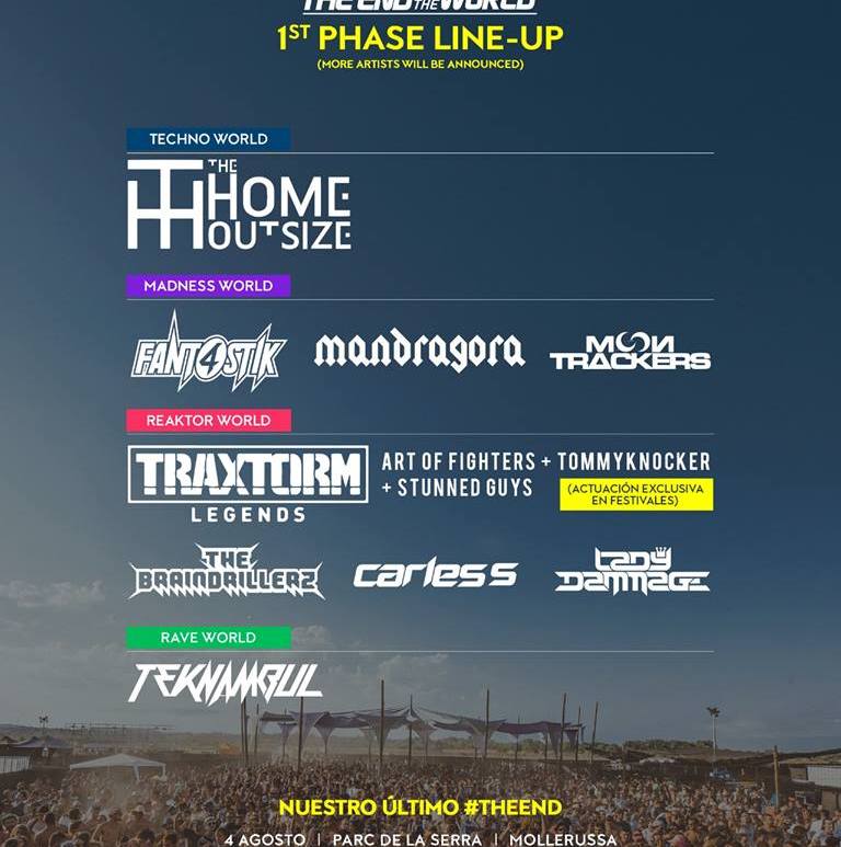El festival Catalán The End of The World ha presentado a sus fans la segunda tanda de confirmaciones de la que será su última edición. Tras anunciar un primer avance con grandes djs como Fant4stik o Tramstorm Legends, el evento que tendrá lugar el sábado 4 de agosto ha sumado a su cartel más de 10 nuevas actuaciones: Techno World: en el primer avance pudimos … Continúa leyendo Segundo avance del festival The End Of The World 2018
