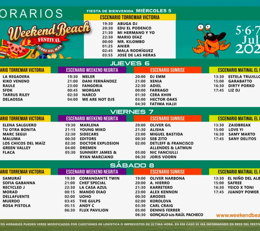 Haciendo honor a su temática estilística variada, Weekendbeach Festival sigue anunciando confirmaciones de cara al próximo verano. El festival andaluz celebrado en Torre del Mar (Málaga) regresará los días 4, 5 y 6 de Julio con un cartel para todos los gustos donde ya figuraban iconos de la música como Steve Aoki, Mora, Melendi y Europe, a los que ahora se suman más actuaciones: La … Continúa leyendo El cartel de WeekendBeach comienza a coger forma con actuaciones variadas